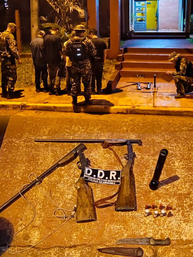 En la Zona Norte, en la localidad de Santiago de Liniers, se realizó la verificación de un Plan de Manejo Forestal autorizado, controlando en terreno el cumplimiento de las actividades habilitadas. Durante la recorrida, y en trabajo conjunto con la División Defensa del Medio Ambiente y Delitos Rurales de la Policía de Misiones, se interceptó a cazadores dentro del predio, procediéndose al secuestro de armas y a la detención de los involucrados.